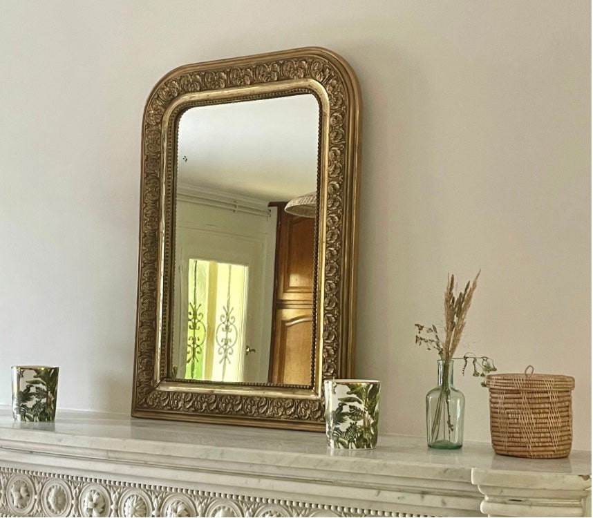 Ce grand miroir ancien Louis Philippe doré à la feuille d'or a rejoint la boutique Grungemama à Lyon.