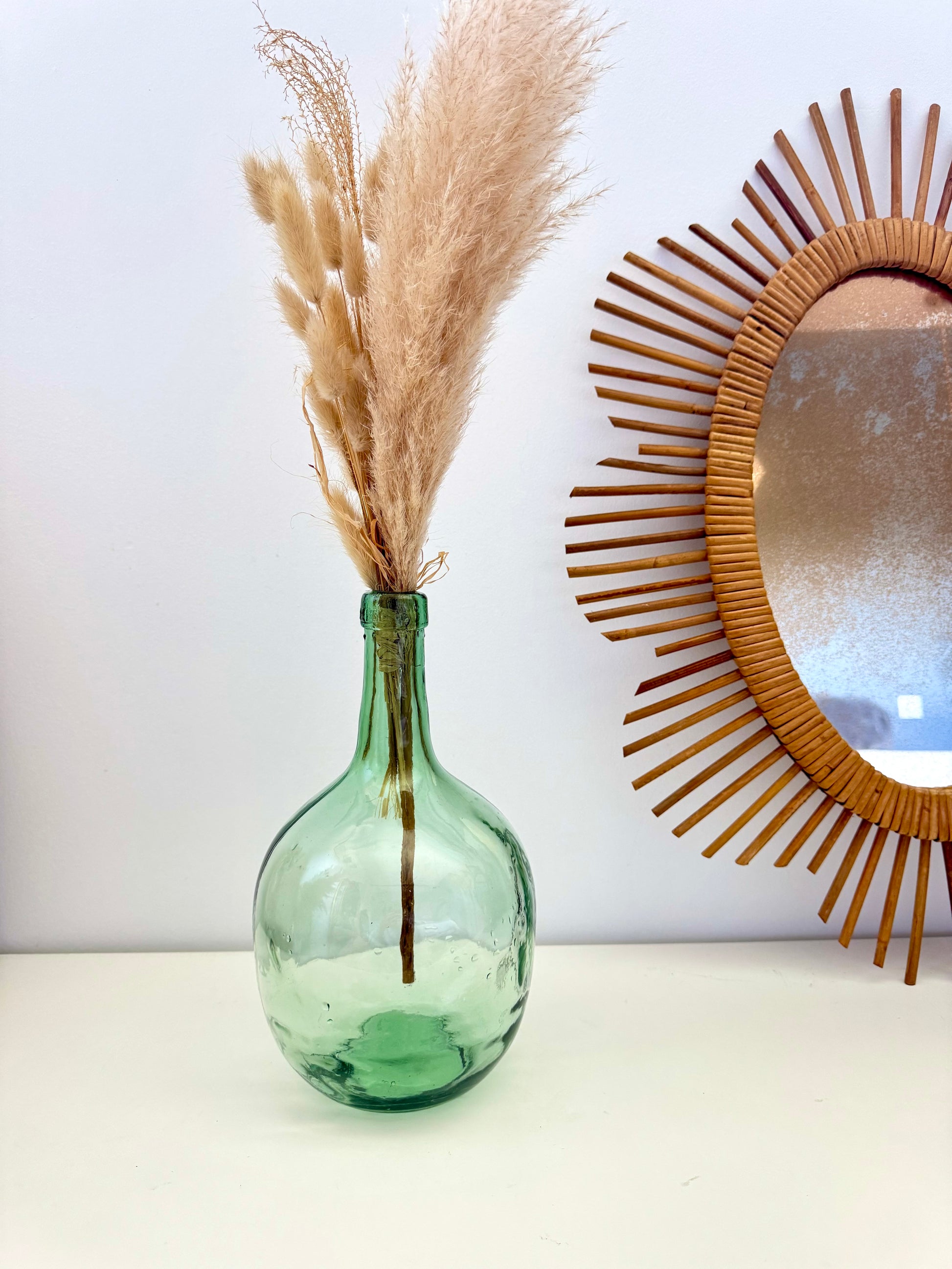 ✨Dame-Jeanne dune contenance d’environ 2/3L, verte d’une forme très originale.